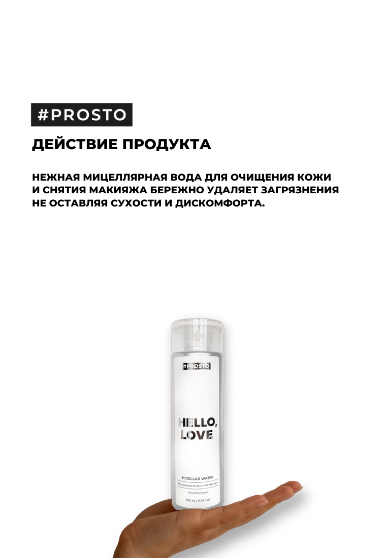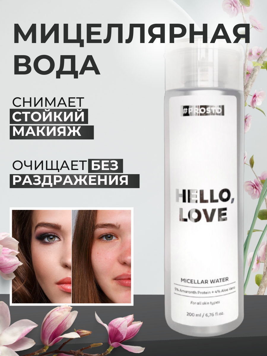 Мицеллярная вода HELLO, LOVE — это идеальное средство уходовой косметики для мягкого и эффективного очищения лица и снятия макияжа. Благодаря своей деликатной формуле, она бережно удаляет загрязнения, не оставляя ощущения сухости и дискомфорта, и подходит для всех типов кожи.