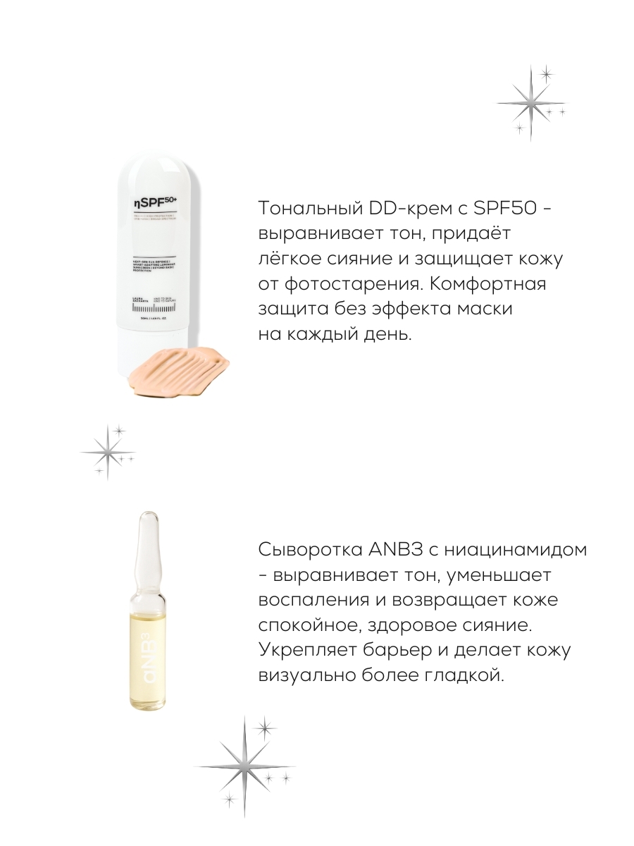 Продуманный уход для кожи, которой важно выглядеть ровной, сияющей и защищённой каждый день. Набор объединяет два средства, которые работают синергично: защищают кожу от фотостарения, выравнивают тон, восстанавливают барьер и возвращают здоровое сияние.